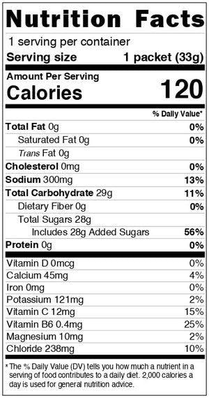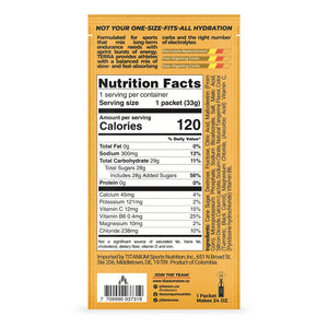 Get 714 milligrams per packet or 505 milligrams per scoop (1 serving)of our TERRA mix with 5 essential electrolytes (sodium, potassium, magnesium, calcium, and chloride) to help avoid bonking and cramps.