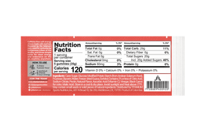 Each packet contains 5 soft energy chews, providing 29g of carbs per serving. This is enough energy for about 1 hour of moderate to intense exercise.