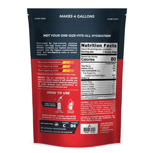All-natural fast-absorbing hydration drink mix (isotonic) specially formulated for power sports (high sweat rates, high resistance and acyclical) that replenishes 5 electrolytes lost through sweat during exercise and rapidly stocks up your muscles with glycogen than can be turned into fuel as needed.